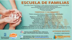 Städtischer Rat und Horizonte-Proyecto Hombre organisieren eine neue Ausgabe der Schule für Familien zur emotionalen Erziehung von Jugendlichen.