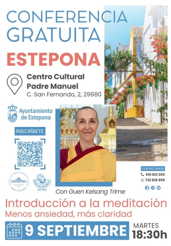 Der Stadtrat von Estepona gibt bekannt, dass der buddhistische Lehrer Guen Kelsang Trime am kommenden Dienstag, dem 9. September, um 18:30 Uhr, im Centro Cultural Padre Manuel eine kostenlose Vorlesung mit dem Titel ‚Einführung in die Meditation. Weniger Ängste, mehr Klarheit‘ halten wird. Während der 90 Minuten werden die Teilnehmer Schritt für Schritt lernen, was…