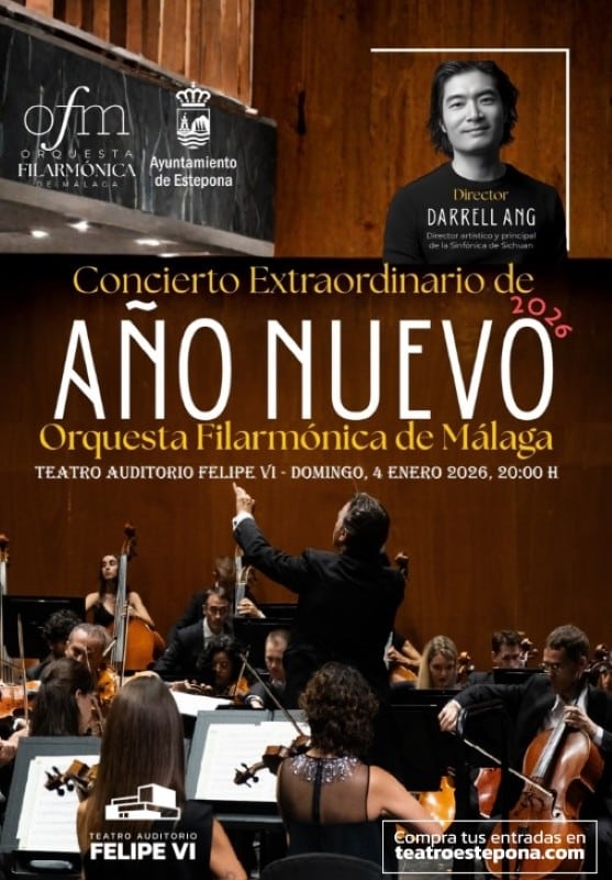 Das Neujahrskonzert wird vom singapurischen Maestro Darrell Ang, künstlerischer Leiter und Chefdirigent der Sichuan Symphony, dirigiert. Es findet am Sonntag, dem 4. Januar, um 20:00 Uhr statt. Das Rathaus von Estepona wird am Sonntag, dem 4. Januar, um 20:00 Uhr, das kulturelle Programm des neuen Jahres 2026 mit dem traditionellen außergewöhnlichen Neujahrskonzert eröffnen, das vom…