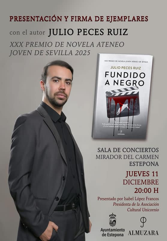 Präsentation und Signierung von Exemplaren des Buches ‚Verflüssigt zu Schwarz‘ mit dem Autor Julio Peces Ruiz, Gewinner des Ateneo Joven de Sevilla 2025 Romanpreises