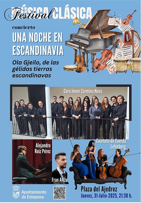 Donnerstag, 31. Juli um 21:30 Uhr, mit freiem Eintritt. Das Programm wird Werke des norwegischen Komponisten Ola Gjeilo unter dem Titel ‚Aus den eisigen skandinavischen Ländern‘ beinhalten. Die Stadtverwaltung von Estepona informiert, dass das Estepona Classical Music Festival sein thematisches Programm mit einem Abend, der Skandinavien gewidmet ist, fortsetzt. Dieser wird am nächsten Donnerstag, 31….