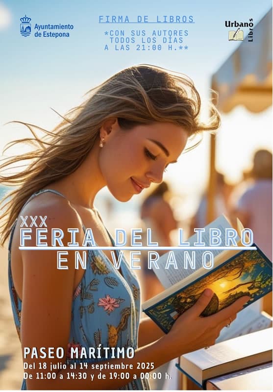 Die Sommerbuchmesse wird bis zum 14. September am Paseo Marítimo bleiben, von 11:00 bis 14:30 Uhr und von 19:00 bis 24:00 Uhr. Die Stadtverwaltung von Estepona teilt mit, dass der Paseo Marítimo ab dem kommenden Freitag, dem 18. Juli, die XXX Sommerbuchmesse veranstaltet, die von der Firma ‚Urbano Libros‘ in Zusammenarbeit mit dem Stadtrat organisiert…