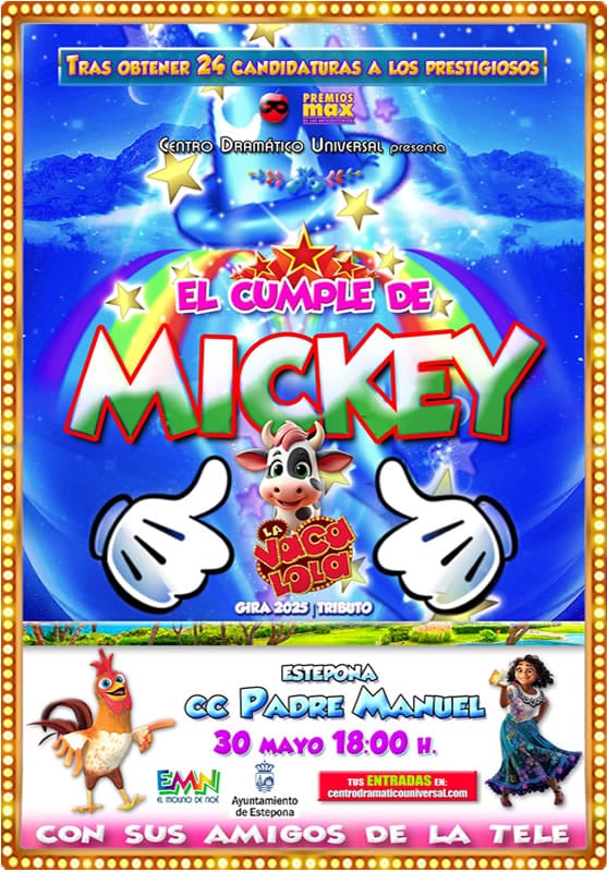 Viele Gäste werden am kommenden Freitag, den 30. Mai um 18:00 Uhr Mickeys mit Spannung erwartete Party mit Spielen und Liedern feiern. Die Stadt Estepona informiert, dass das Zentrum für Schöpfung und Forschung der darstellenden Künste ‚El Molino de Noé‘ am kommenden Freitag, den 30. Mai um 18:00 Uhr im Kulturzentrum Padre Manuel die Show…