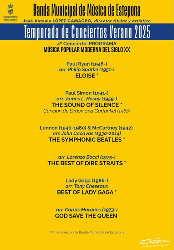 Die Stadtkapelle von Estepona wählt ein Programm moderner Popmusik des 20. Jahrhunderts für das nächste Sommerkonzert aus