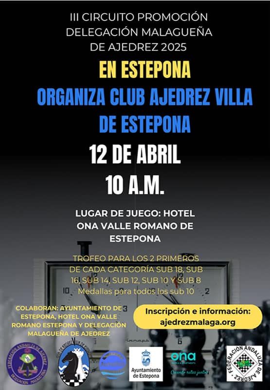 Die Veranstaltung, die vom Schachclub Villa de Estepona in Zusammenarbeit mit dem Konsistorium organisiert wird, findet am Samstag, den 12. April, ab 10:00 Uhr im Hotel Ona Valle Romano Golf Resort Estepona statt. Anmeldung unter ajedrezmalaga.org. Die Stadtverwaltung von Estepona informiert, dass am 12. April ab 10:00 Uhr in den Einrichtungen des Hotels Ona Valle…