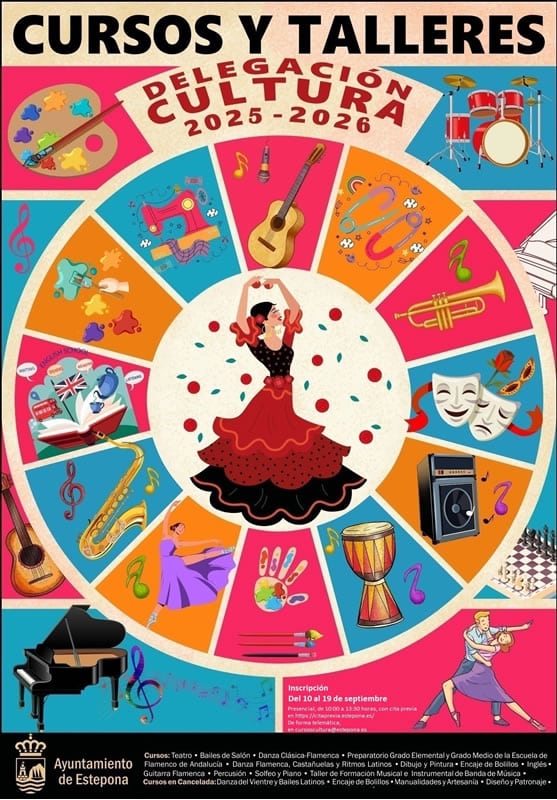 Vom 10. bis 19. September ist der Anmeldungszeitraum geöffnet und die Kurse beginnen am 6. Oktober und enden im Juni 2026. Die Stadtverwaltung von Estepona informiert, dass am 10. September der Anmeldungszeitraum für die Kurse und Workshops im Bereich Kultur 2025/2026 eröffnet wird und eine breite Palette von Disziplinen für alle Altersgruppen angeboten wird. Der…