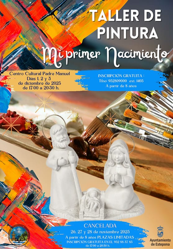 Der Workshop findet vom 26. bis 28. November im Rathaus von Cancelada und vom 1. bis 3. Dezember im Kulturzentrum Padre Manuel statt, mit kostenloser Anmeldung. Die Stadtverwaltung von Estepona informiert, dass die Anmeldefrist für den kostenlosen Malworkshop ‚Meine erste Krippe‘ eröffnet ist, der vom 26. bis 28. November im Rathaus von Cancelada und vom…